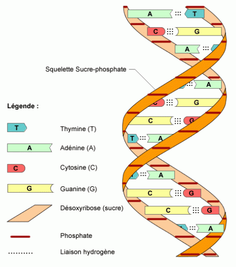 A (Adénine), G(Guanine), C(Cytosine) et T(Thymine) :